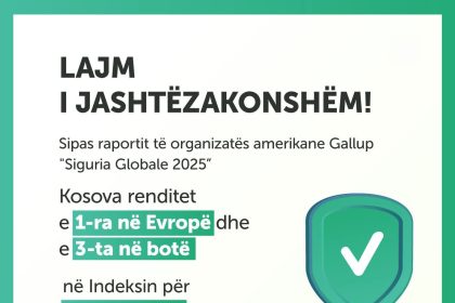 Kosova renditet e para në Evropë dhe e treta në botë në Indeksin e Ligjit dhe Rendit, bazuar në raportin më të fundit “Global Safety” të Gallup-it (2025).