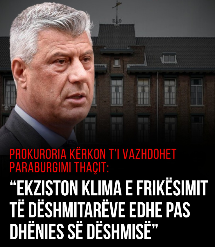 Zyra e Prokurorit të Specializuar e udhëhequr nga prokurorja Kimberly West ka kërkuar vazhdimin e paraburgimit për Hashim Thaçin në rastin në të cilin së bashku me Kadri Veselin, Rexhep Selimin dhe Jakup Krasniqin akuzohet për krime lufte dhe krime kundër njerëzimit.
