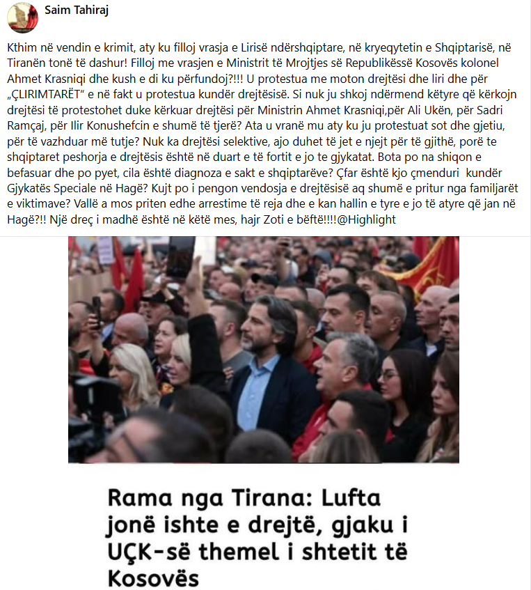 Si nuk ju shkoj ndërmend këtyre që kërkojnë drejtësi të protestohet duke kërkuar drejtësi për Ministrin Ahmet Krasniqi,për Ali Ukën, për Sadri Ramçaj, për Ilir Konushefcin e shumë të tjerë?