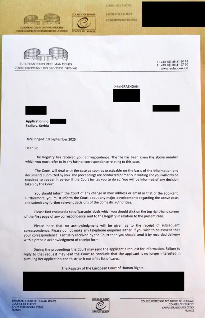 Gjykata e Strasburgut ka regjistruar për herë të parë padinë kundër Serbisë që lidhet me pasivizimin e adresave të shqiptarëve në Luginën e Preshevës.